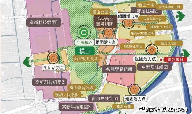 而地处商务创新区南侧的横山高新区,产业、配套双向互哺,将打造高新科技、智慧贸易、TOD商业商务三大产业集聚区。