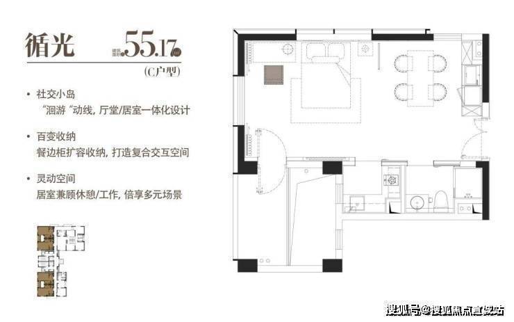 C|循光|建面约55.17m²|一室一厅一厨一卫