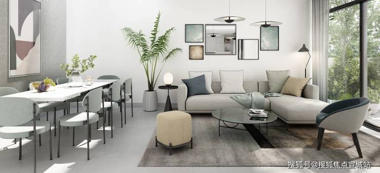 在进行联排别墅内部装修时,可以选择不同色调的白色地毯、窗帘以及沙发,营造对比,打造层次感。