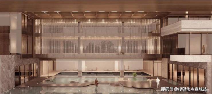 外立面方面,项目汲取广富林文化精髓再造东方屋宇, 采用渐暖色石材、银灰色及香槟色铝板和涂料的组合,带来厚重与轻盈的平衡,在彰显文化豪宅的同时又包含国际风骨,整体呈现诗意东方之美。