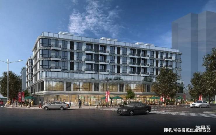一旁的木质条纹墙体,增强了整体构成,将自然元素与都市线条和谐过度.
