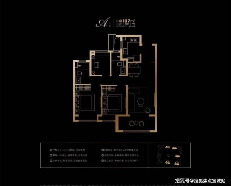 契合现代家庭需求,不浪费每一寸空间;建筑面积约107㎡户型在全屋区域内,根据主人的生活动线、生活需求的不同主次卧+客厅三开间朝南,方正格局,功能区域分布清晰,动线灵活,没有廊道空间的浪费,充分利用每一寸室内空间。