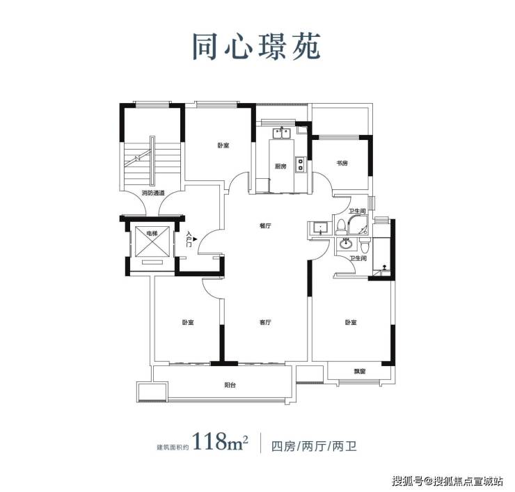 118㎡四房118175-188.84室2厅2卫,对开门电梯