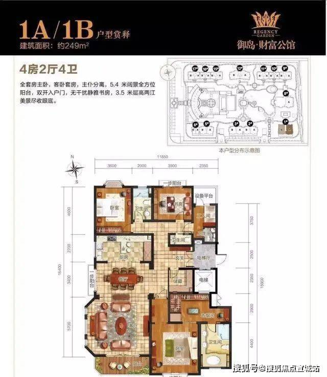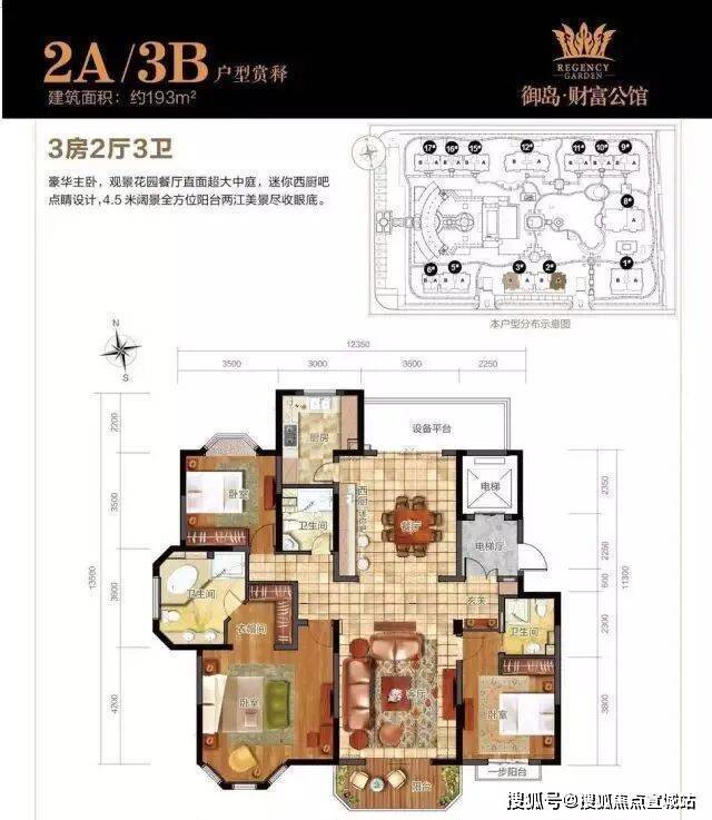 精装户型:134-193㎡3房、170㎡4房、258-287㎡5房,主力精装面积180-190㎡