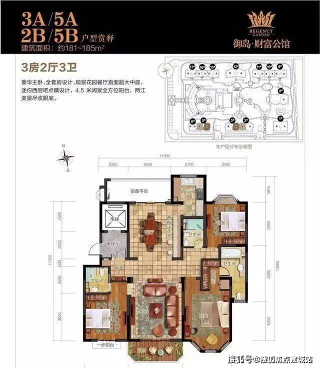 面积:181-185㎡ 户型:3房2厅3卫▼