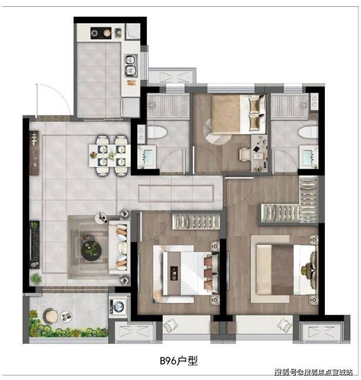 约96~105㎡高层,朗阔三房设计,多功能空间适配三口之家、三代同堂,亦或者是二孩家庭。
