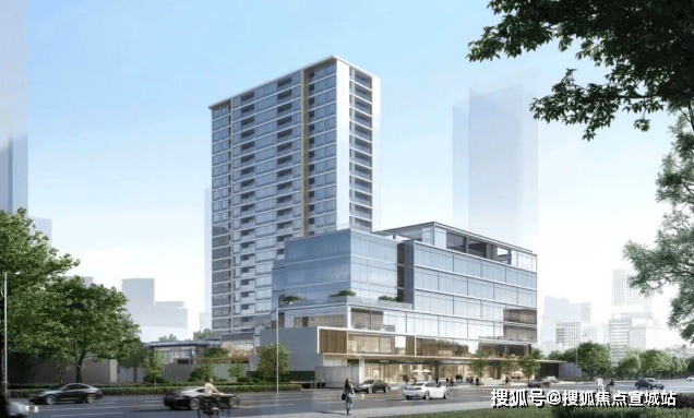 外立面:四面铝板+香槟金线条+天然奢石点缀,辨识度高,质感出众,为市北西罕见的全铝板立面