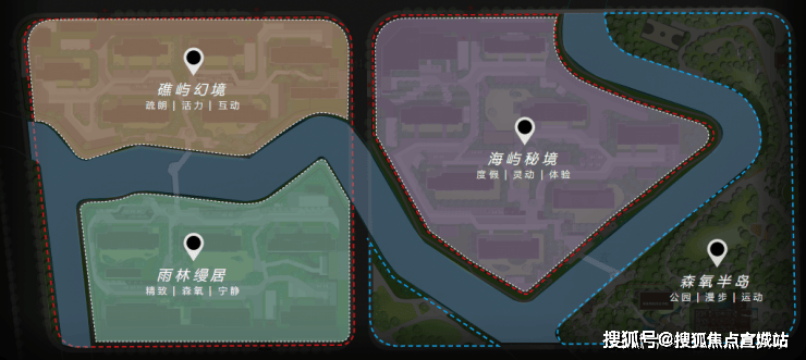 罕见双自然水系!一横一纵2条水系将项目地块一分为三,形成三座天然“岛屿社区”,这在市面上非常少见。