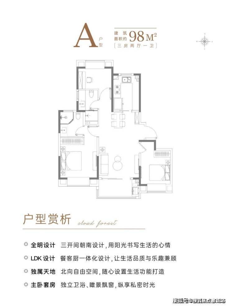 A户型 建面约98㎡3房