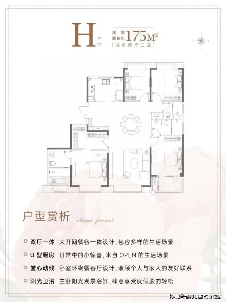 建面约175m²4房2厅3卫户型▼