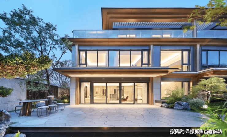 你看,坡顶飞檐、阶梯入门、青松绿植、格栅围墙……高门大户般的门头,流转着东方气韵,再现风雅之境。