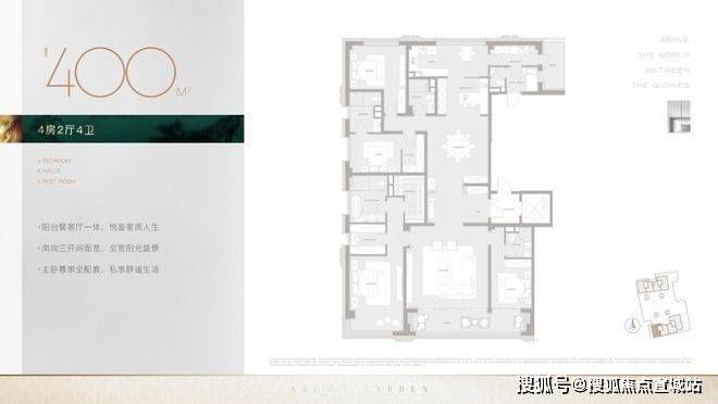 主力户型为建面约260-882㎡天际大平层,其中489㎡户型拥有约26米南向面宽,得房率高达80%,层高3.45米。