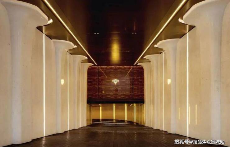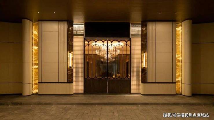 6、社区含“奢材”量很高。门庭延街的外立面,以精工定制弧形米色石材为主调,镶嵌典藏级老虎玉大理石,点缀古铜色现代海派艺术感灯器,整体呈现出百年海派的贵雅气质。