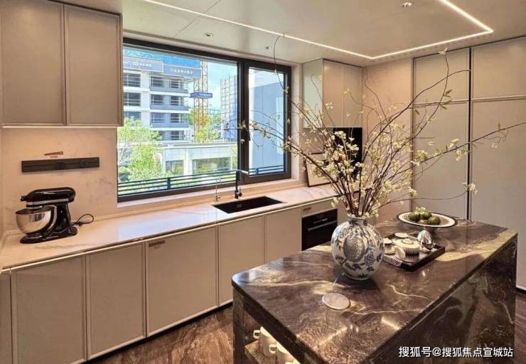 8、不仅是金钱上的奢侈,更是时间广度的奢侈。比如,整个下沉式庭院材料选用土耳其进口老虎玉,由匠人耗时60天手工打磨定制,可见海上·清和玺对业主归家仪式感设计的用心与苛求。海派光厅之外的归家迎宾树木更是由设计师辗转多个城市才寻到的、树龄超60年的福木“紫薇”。