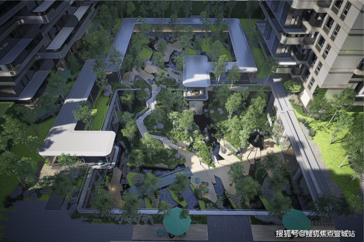 而蠡棠森屿的做法是:20栋小高层以12-17F黄金高度错动布局,楼间距最宽达到约60米,相当于3个标准足球场的呼吸尺度,确保低层住户也能拥有无遮挡的采光权。