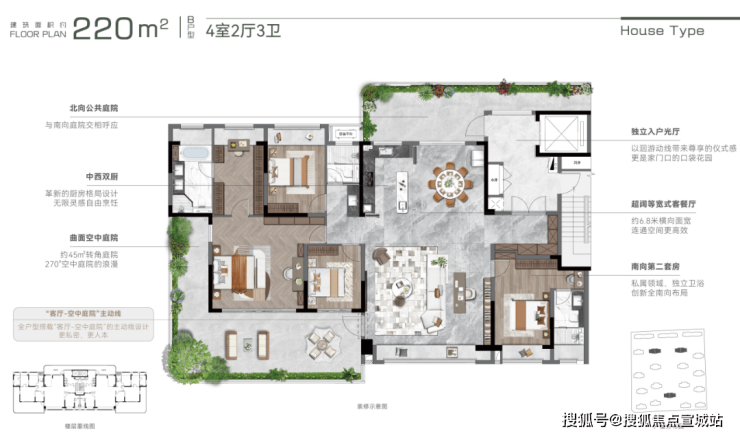 空中庭院:每户赠送30-50㎡露台,奇偶层错位设计,270°环幕视野