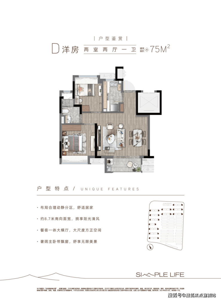 厨房是L型布局,有意思的是在侧边做了一个岛台,这个设计在约75㎡的户型中非常少见。