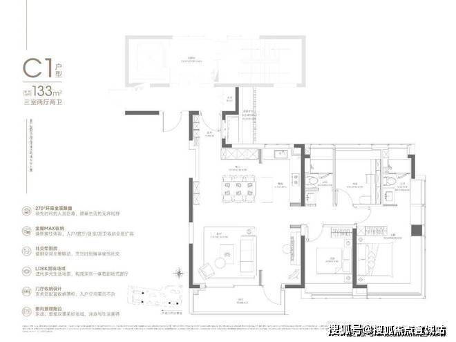 「约133㎡ 3房2厅2卫」