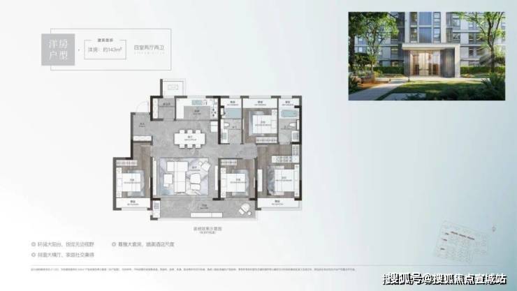 洋房143平户型:四室两厅两卫,总价270万-290万