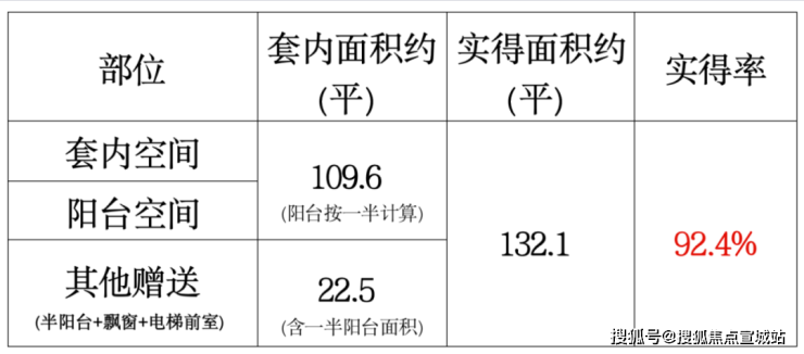 建面约143平四房阳台附赠更大、门口的私家电梯厅预测能有9-9.5个平方的附赠;如果都加在一起,实得率超92%,实际可利用面积超过132平!