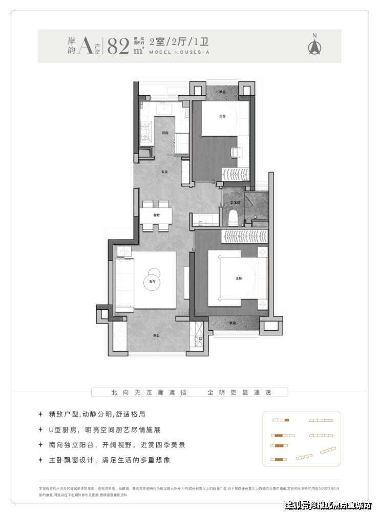 另外这个户型能更好实现南北通透,客厅-餐厅-阳台-厨房一线连通。