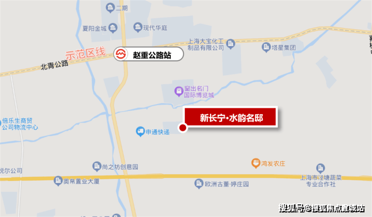 项目北侧直线约1公里就是示范区线赵重公路站(在建),向西可以直达青浦华为研发中心,向东2站即可到达前湾,3站直通虹桥枢纽!