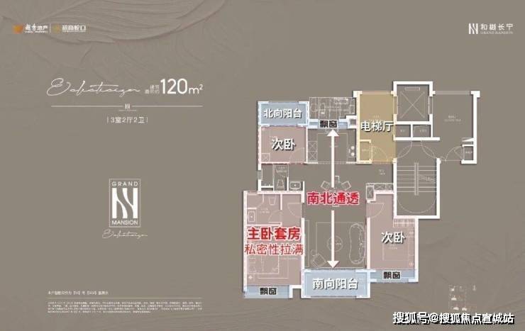 项目建面约120㎡户型是类独立电梯厅的设计,室内则是标准的南北通透+三开间朝南设计;主卧套房配置,自带卫生间,私密性和舒适度俱佳。