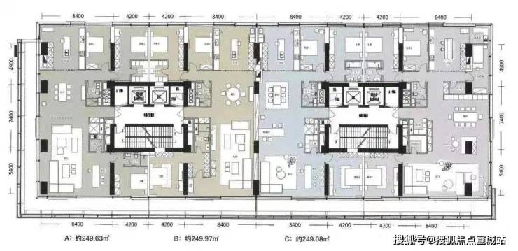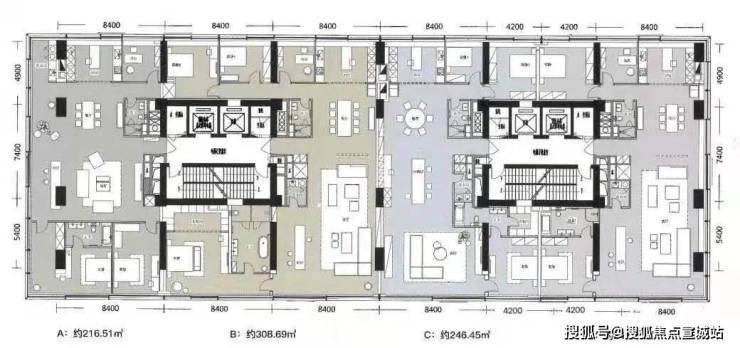 •面积:200.96㎡-𝟐𝟓𝟎.𝟏𝟒㎡(交付三房两厅三卫)