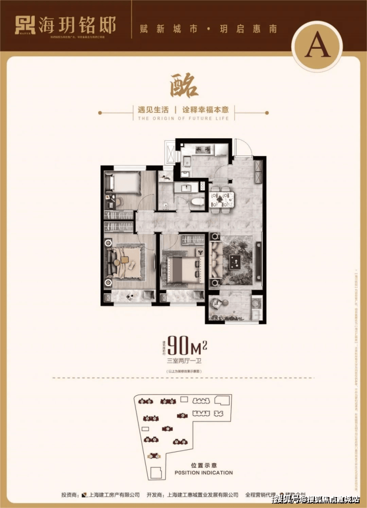 海玥铭邸售楼处电话:400-885-1337(预约看房热线)90㎡3房户型三开间朝南,动静分离.南向卧室均带飘窗,户型方正,南北通透舒适,尽享开阔人生格局;客厅衔接阳台,超大阔绰空间,便于对生活的想象,L型厨房,操作动线流畅,大大节省厨房的空间.