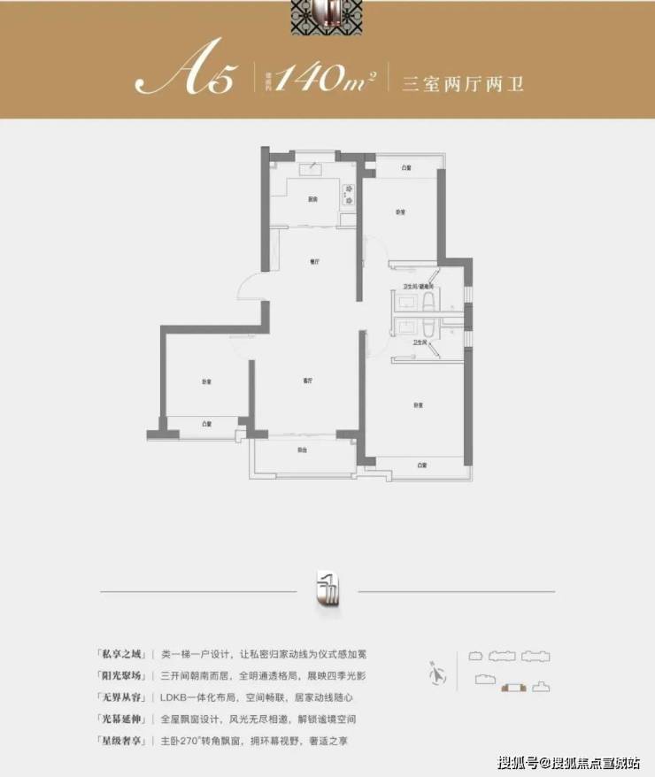 空间尺度拉满的同时,更做到了全明通透,三开间朝南的布局不仅方正,更最大程度满足了室内通风采光的需求!配合LDKB的餐厨一体化设计和全卧飘窗、主卧套房配置,更令本就开阔的居住空间在功能性上同样做到极致!