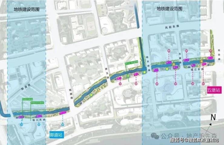 连堡丰城(五堡TOD&六堡TOD),是集生活配套、艺术展示、潮玩体育类等综合业态于一体的“地下大都会”。全长约3.8公里,通过城市轨道交通引领,深度开发地下空间,在钱塘江畔开发出33万平方米的地下“隐形城市”,连接了地铁9号线御道站、五堡站、六堡站、红普南站。