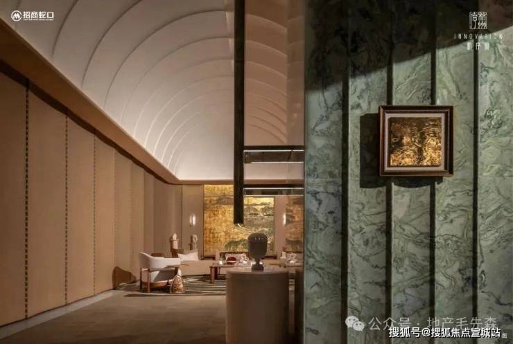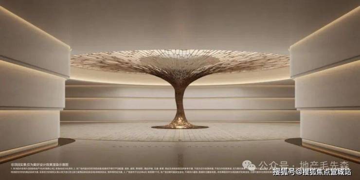 参考台北嘉佩乐酒店的叙事风格呈现第二重门厅。以一座环形的前场庭院作为业主归家的情绪整理空间,打造从繁华到宁静的空间过渡,开启度假般归家体验。