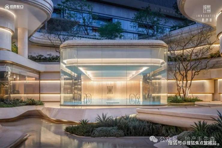 两棵高约14米的“生机之树”撑起三层观景回廊。透过大面落地的苹果店同款超白玻,层层叠石和潺潺流水尽收眼底,仿佛让人置身于九溪烟树的溪水幽谷当中。