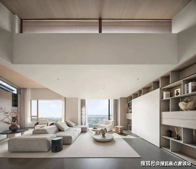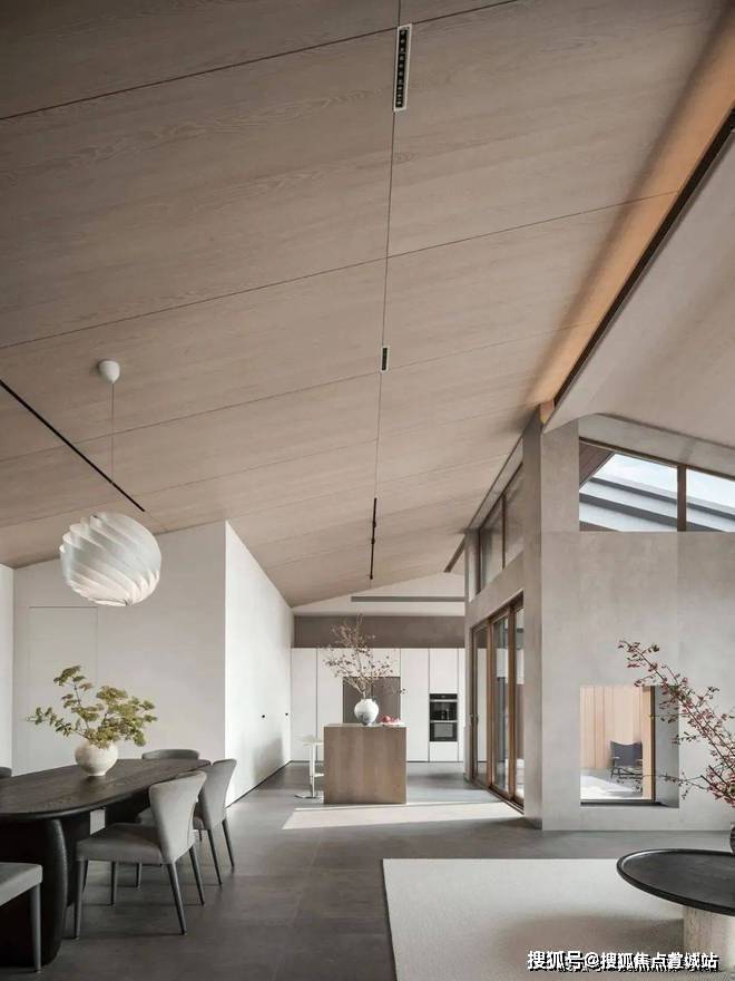这个空间的设计很独特,既通透又有层次感。巧妙的错位设计,让每个空间都有自己的尺度感。