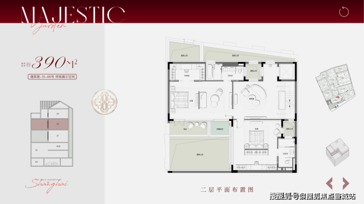 户型亮点:以 310㎡户型为例,首层有 3.6 米挑空客厅,面宽 12 米,连接 80㎡私家庭院;二层为双卧室套房设计;三层主卧套房附带专属露台;地下两层 5 米层高空间,可打造家庭影院、酒窖或双车库。