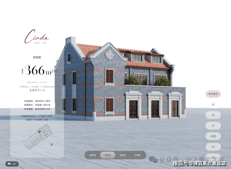 地下1F志趣空间, 约7.2m层高,私人菁英社交圈层。首层花园入户, 大横厅会晤场域,与时代精神际会。二三层静谧于心, 起居室多套房设计,梧桐下的栖心之所。 屋顶露台、花园庭院,超大附赠面积,藏身心于天地恢弘。