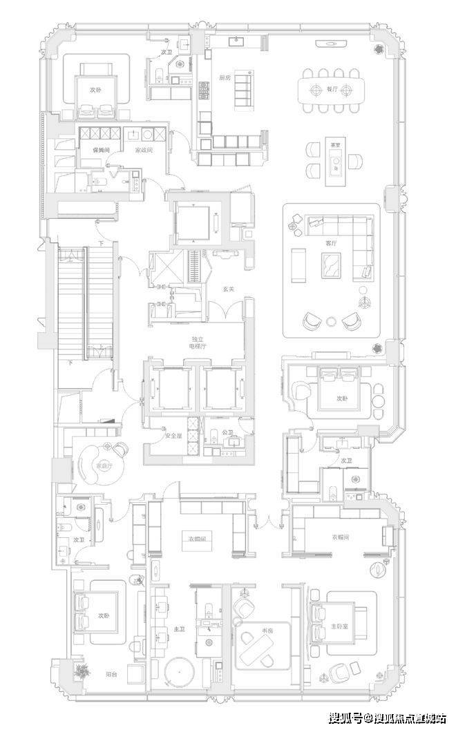 而高福云境凭借150米的高度及衡复风貌区的低密,形成了顶豪中难得的“无界视野”。