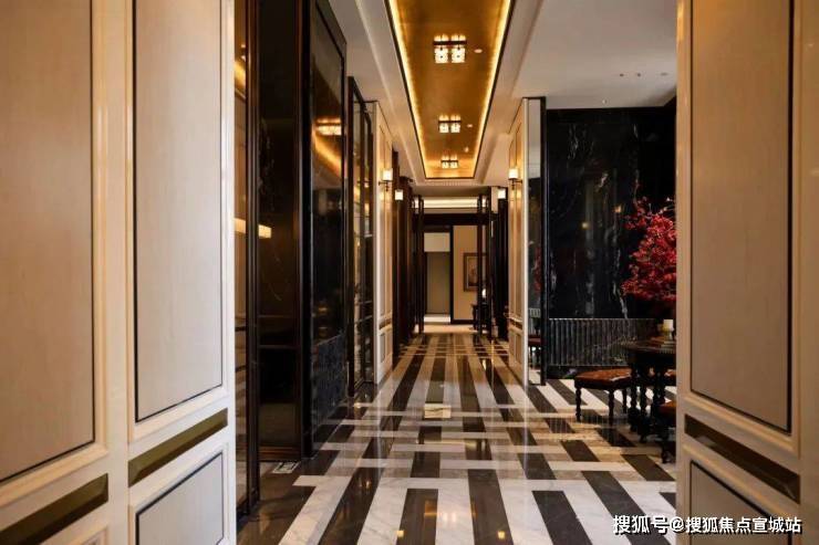 约30米的艺术连廊,借鉴PRADA荣宅多立克柱式以及和平饭店的拱形廊道,摩登海派,魅力十足: