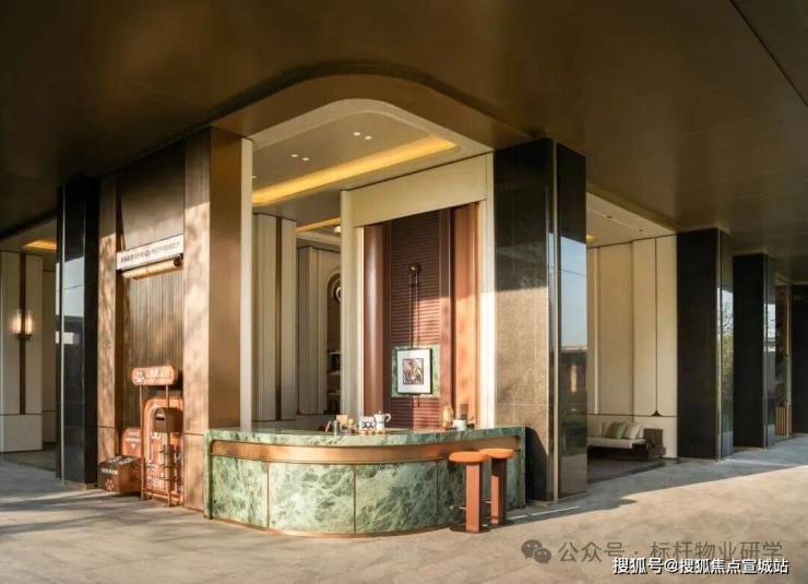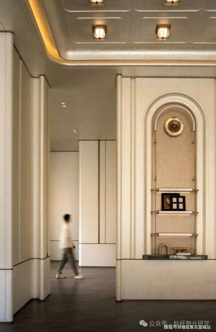 其创新性在入口处展现得淋漓尽致:常规沿街楼栋通常直接由物业用房过渡至住宅二层,但该项目在物业用房上方特别增设了架空层,形成"物业用房-架空层-住宅二层"的独特空间序列。这一设计突破性地通过地面整体抬升,不仅解放了沿街楼栋原本受限的架空层空间,更创造出尺度恢弘的入户大堂,使归家动线在垂直维度上获得仪式感的升华。