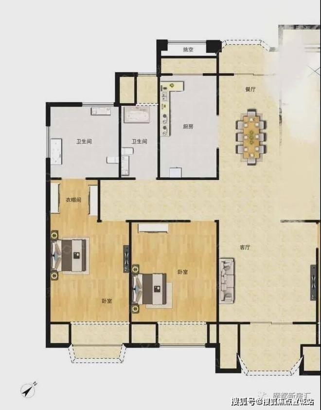 主卧大套间:休息区+步入式衣帽间+独立卫浴+附赠大飘窗,舒适度极高。