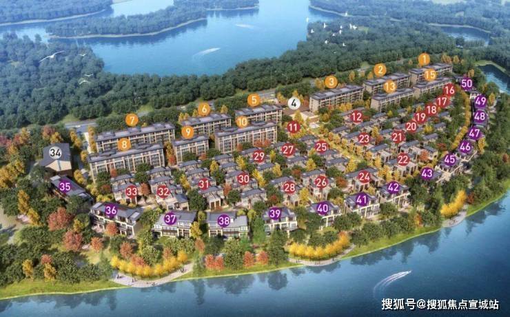 |产品类型:洋房(黄色标签),合院(红色标签),临湖别墅(紫色标签)