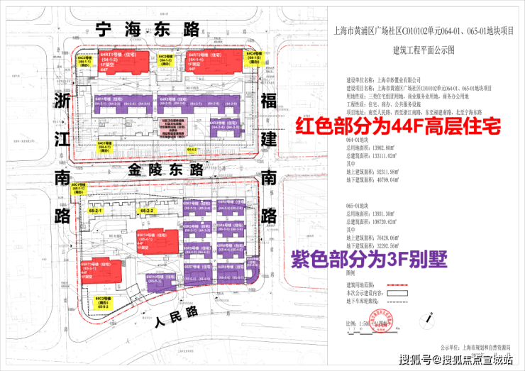 64地块拟建设:2栋44F超高层、3栋别墅建筑