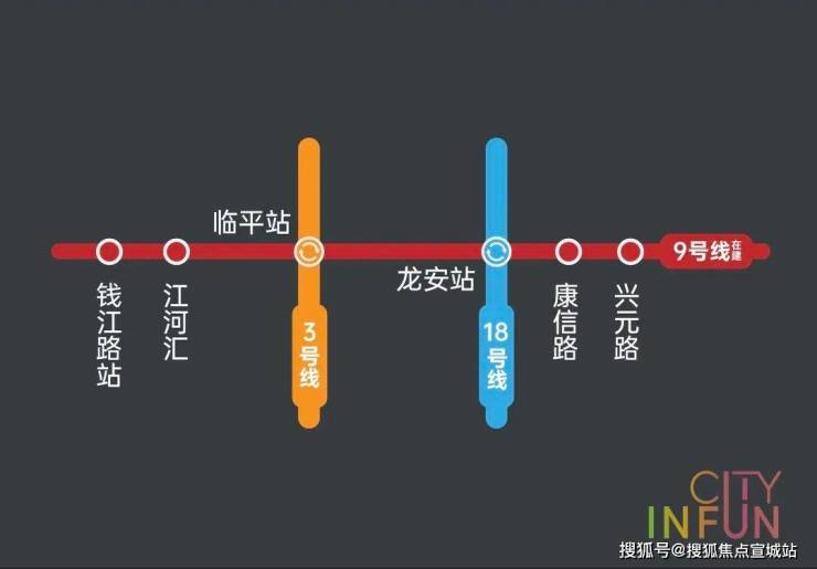 项目横跨地铁9号线兴元路站(在建)、康信路站(在建)两大站点,以轨道打破壁垒,一条地铁直达钱江新城、城东新城、滨江、西湖等高能区域,更高效的日常通勤外,还能享受到一脉市心的生活配套。
