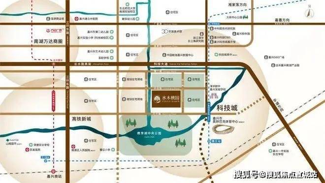 水木槜园,位于嘉兴科技城槜李湖中央公园北岸(清华附中西侧约400m)。周边有科技大道、三环东路等立体交通网,出行便捷。