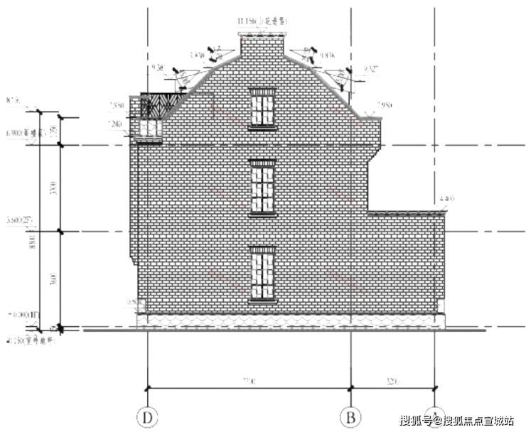 6号楼比较特别,是相对比较独立的类独栋了,标准地上3层,看看它的立剖面图:
