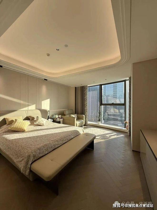 项目以三叶草为建筑原型,这样的建筑设计也造就了每户270度的环幕都市景观,较高的窗墙比为室内提供大尺度的采光面及通透感,阳光如流水般倾泻。