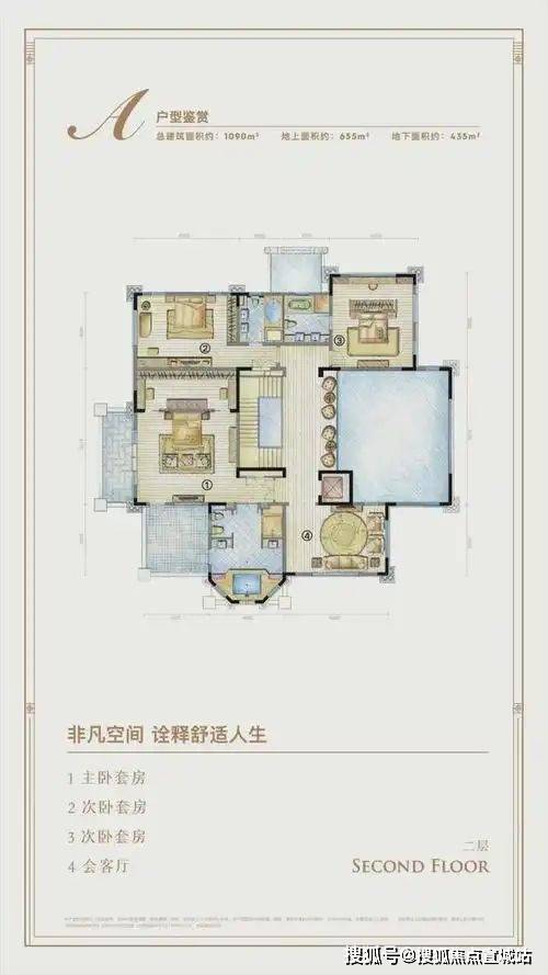 建筑风格:融合意大利文艺复兴外观与新中式合院元素,采用天然石材立面,挑高客厅达8.7米,主卧层高5.5米.24