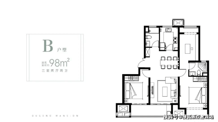 松韵雅庭建面约98㎡户型图