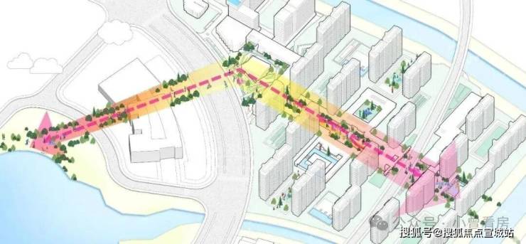 据悉社区由自持住宅、可售住宅、社区配套三大功能组合而成,北区为公区自持配套区,中区为住宅社区,南区为住宅社区及配套。