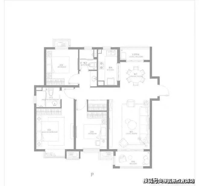 建面约125㎡三房两厅两卫,南北通透,户型方正,主卧大套房,带阳台与独立主卫,更舒适的居住尺度.